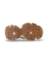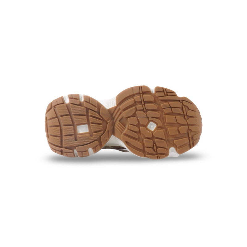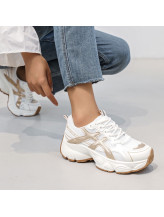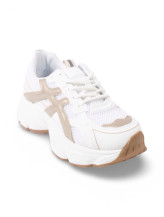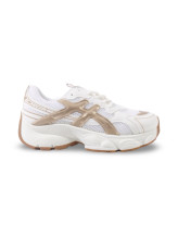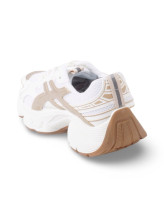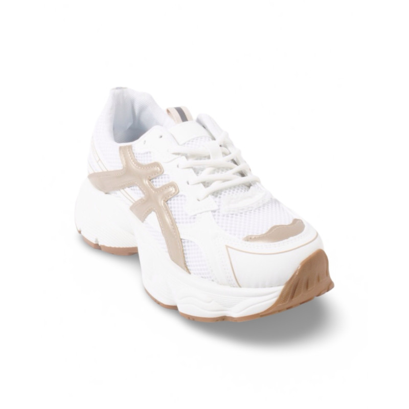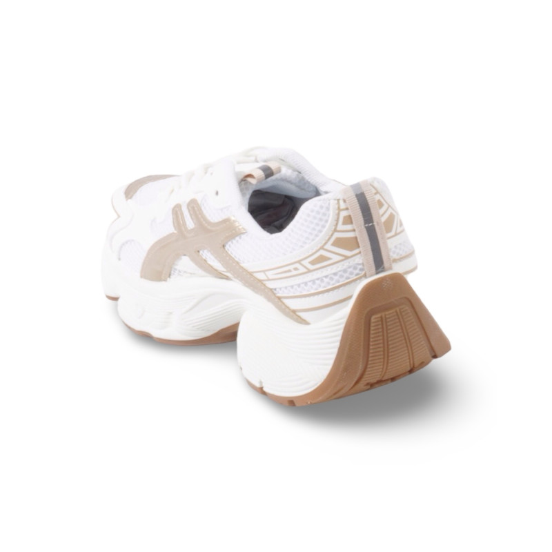Découvrez cette chaussure de sport élégante en blanc et beige, rehaussée d'une touche beige dorée qui lui donne un look chic et moderne.
