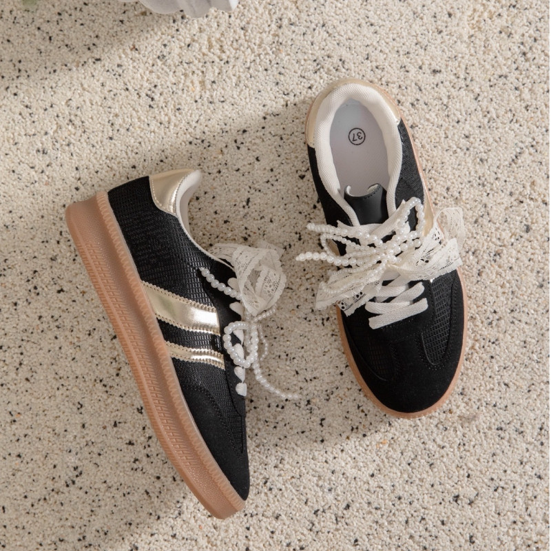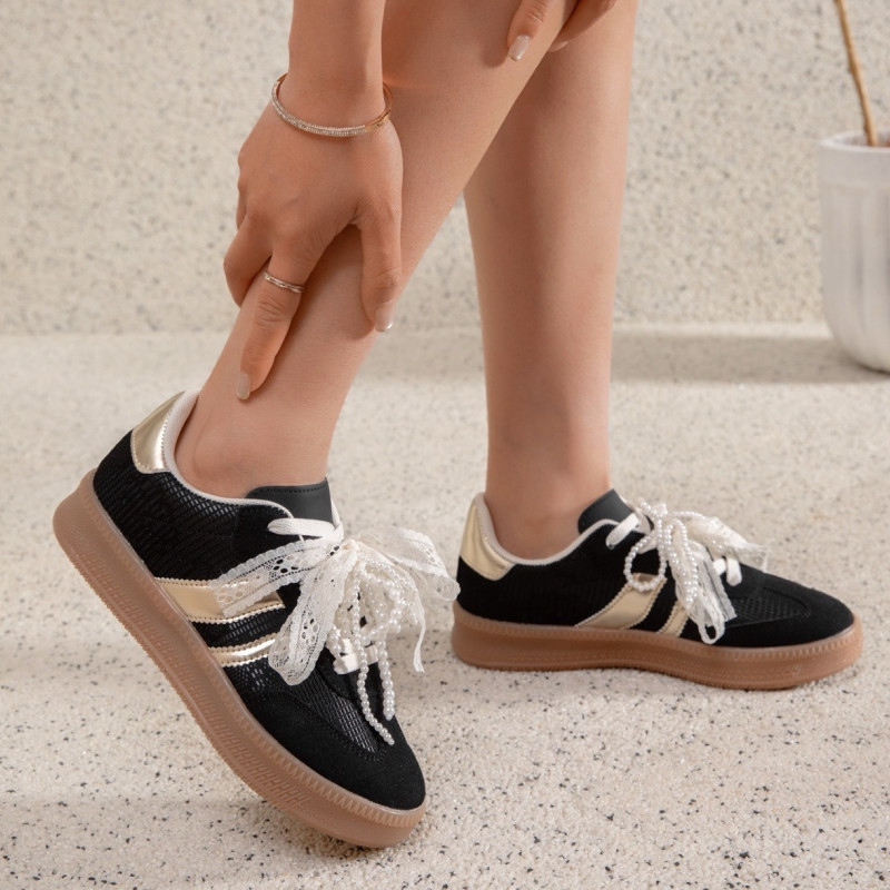 écouvrez ces élégantes baskets blanches ornées de détails dorés, conçues pour allier confort et style. Parfaites pour une tenue décontractée ou une sortie en ville, elles apportent une touche de sophistication à votre look. Ces chaussures sont idéales pour les femmes qui souhaitent allier praticité et tendance.