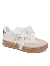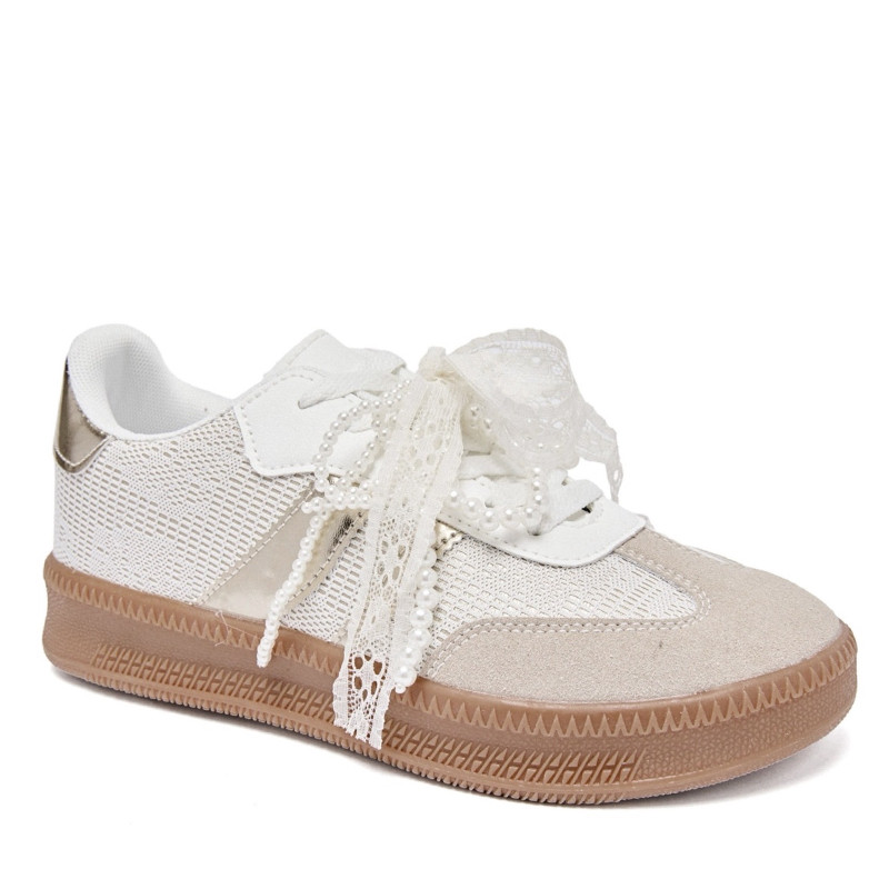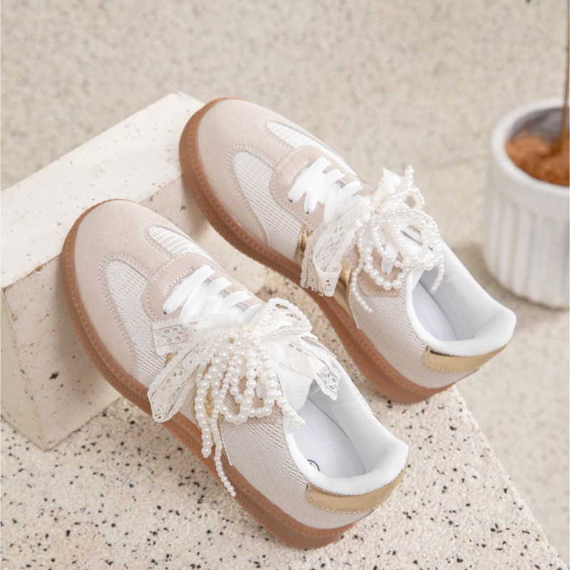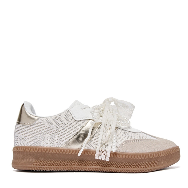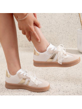 écouvrez ces élégantes baskets blanches ornées de détails dorés, conçues pour allier confort et style. Parfaites pour une tenue décontractée ou une sortie en ville, elles apportent une touche de sophistication à votre look. Ces chaussures sont idéales pour les femmes qui souhaitent allier praticité et tendance.