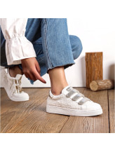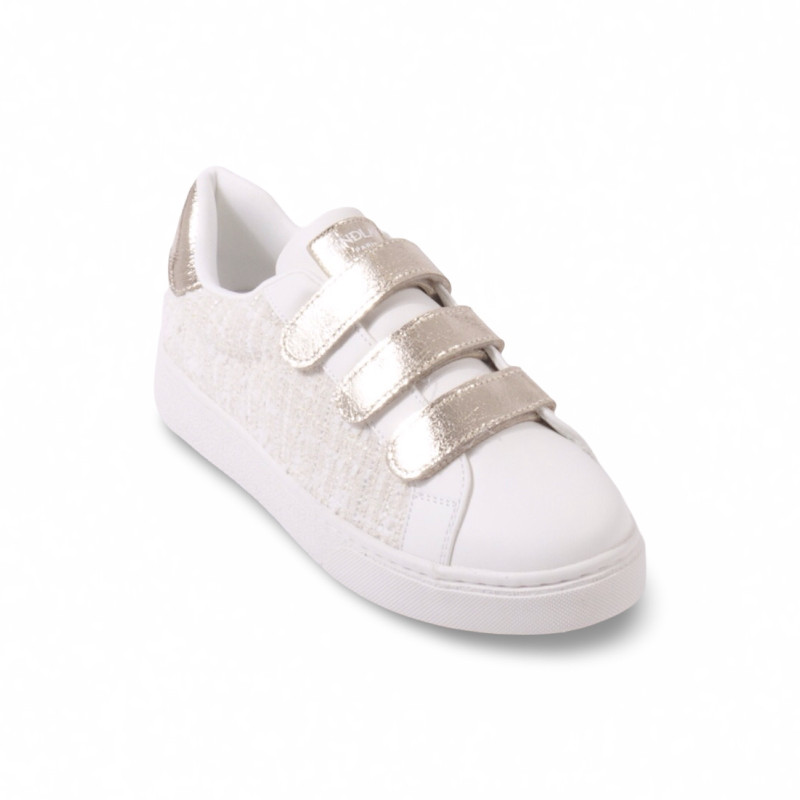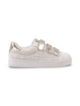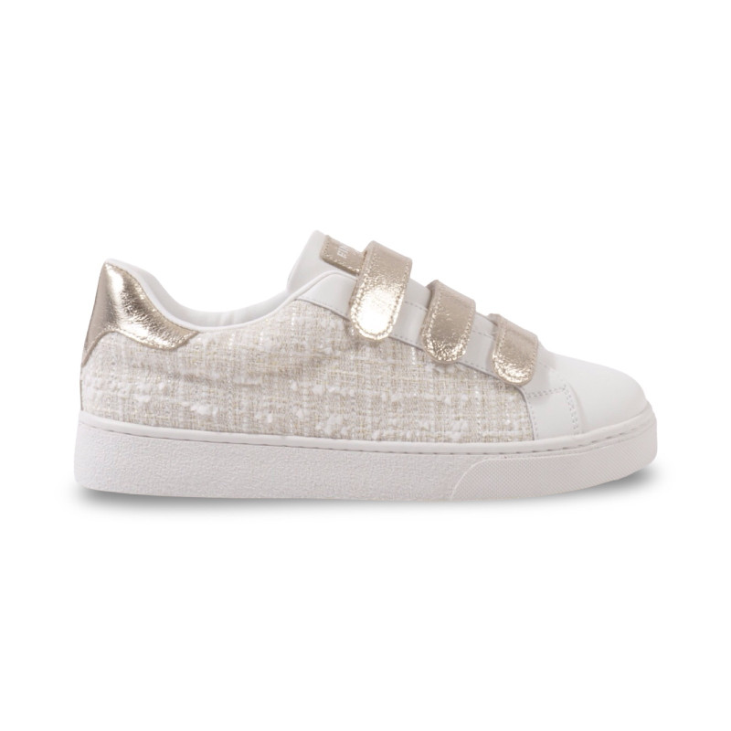 Les baskets smilla revisitent le style casual avec une touche chic. Leur originalité réside dans leur matière texturée façon tweed clair, sublimée par des brides velcro argentées qui remplacent les lacets classiques.