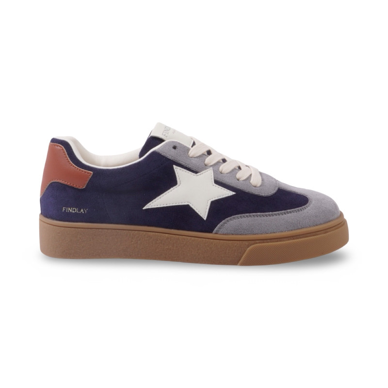 Avec son design inspiré des sneakers rétro, la basket Keneya séduit par son mélange de couleurs bleu marine et gris relevé par une étoile blanche sur le côté. Son look dynamique est soutenu par une semelle en gomme camel qui lui apporte à la fois confort et stabilité.