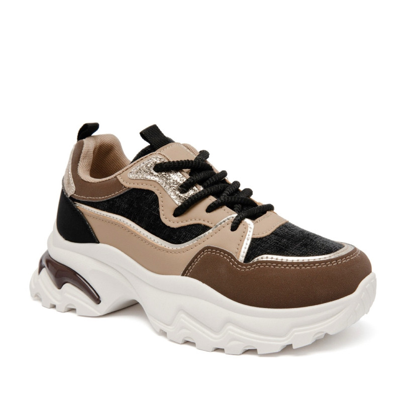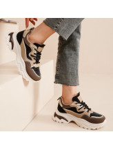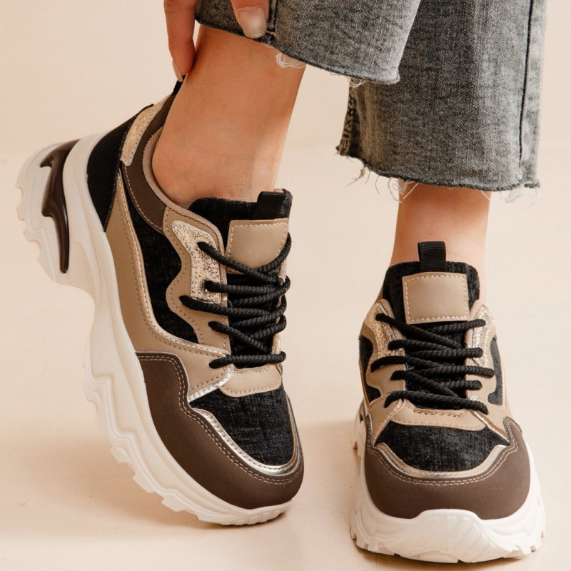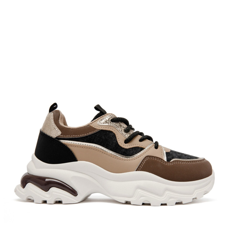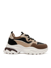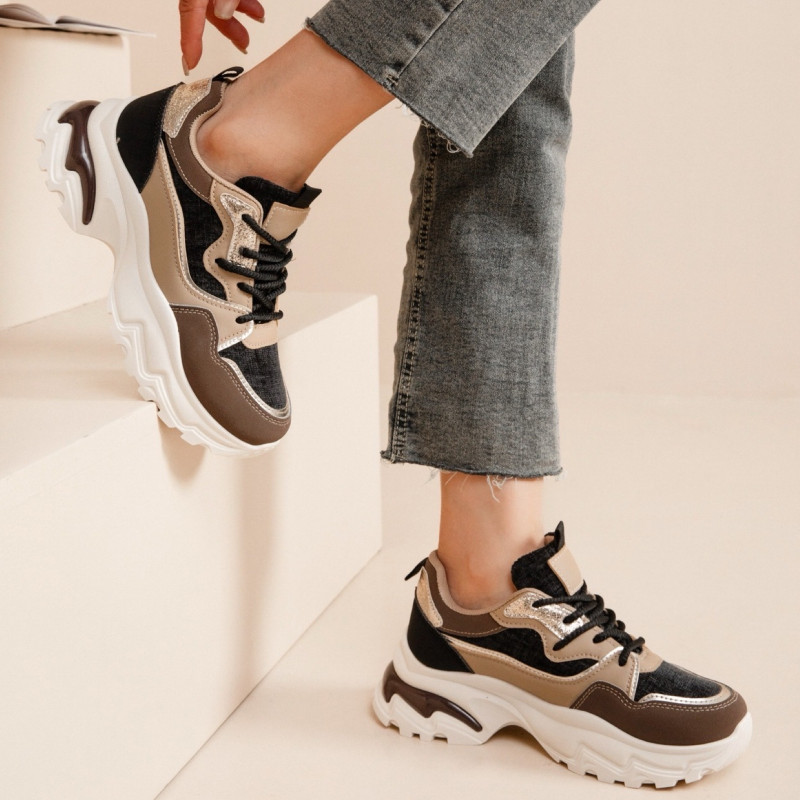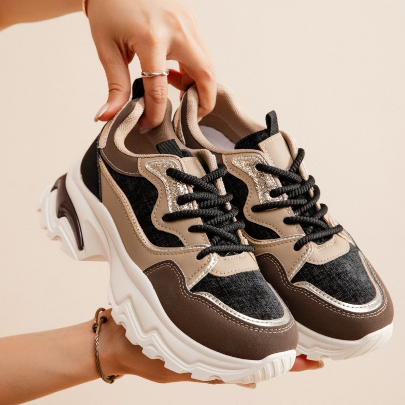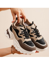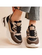 Baskets Multimatières Noir & Taupe ou Bordeau & Beige – Semelle Épaisse & Style Tendance