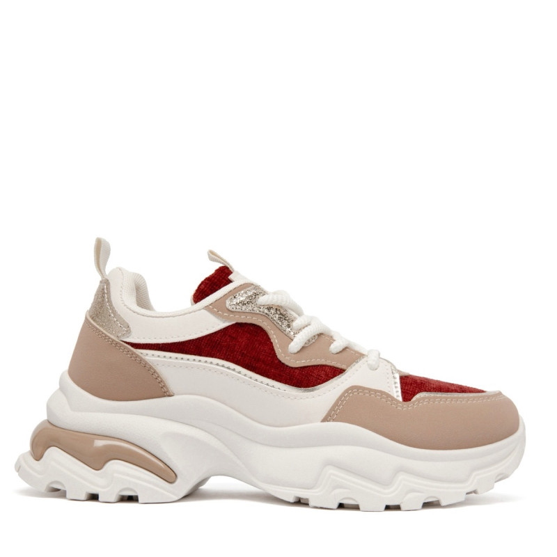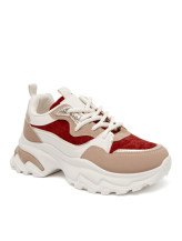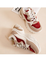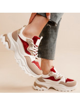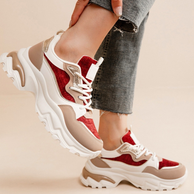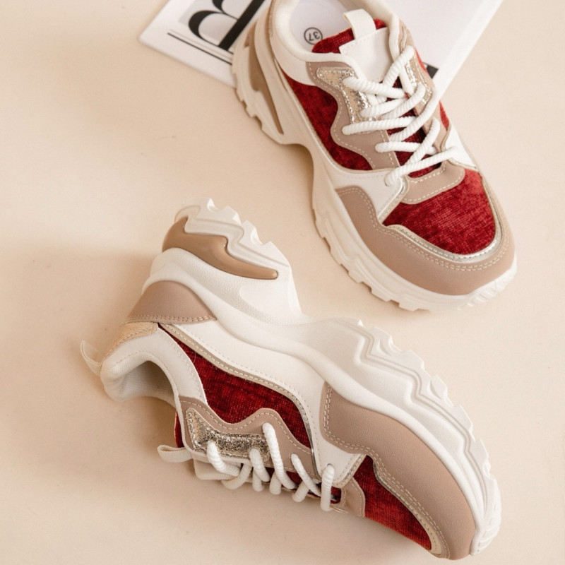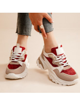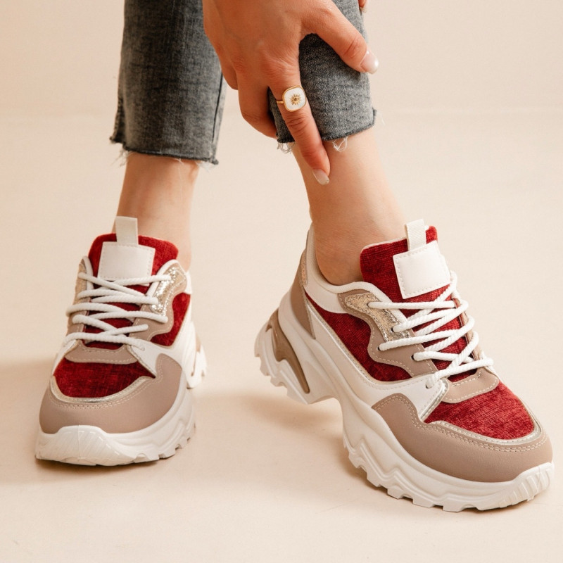 Baskets Multimatières Noir & Taupe ou Bordeau & Beige – Semelle Épaisse & Style Tendance