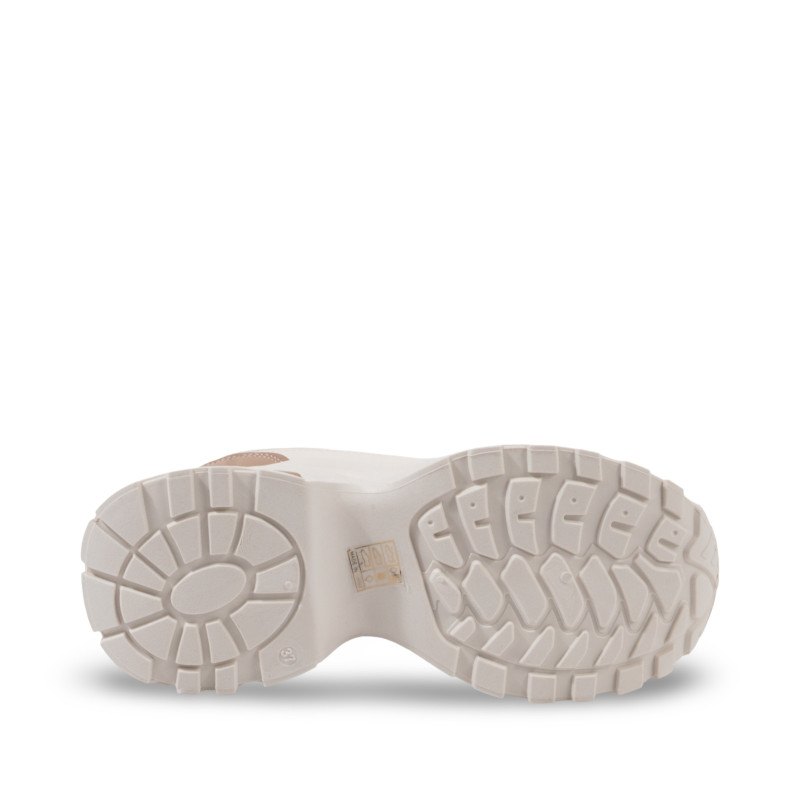 La semelle épaisse à effet cranté blanc modernise l’ensemble tout en offrant un confort remarquable.