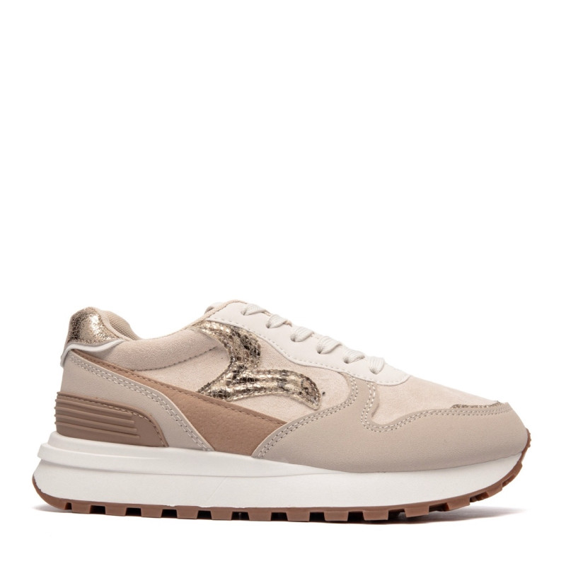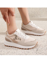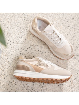 Livia est l’alliée parfaite pour conjuguer style affirmé et confort au quotidien. Cette basket beige revisite l’esprit rétro-running avec une ligne moderne rehaussée par un jeu subtil de textures et de finitions scintillantes.
