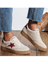 Soline revisite la sneaker hivernale avec une touche cocooning irrésistible. Sa matière effet mouton, associée à des empiècements en matière synthétique haut de gamme, apporte à la fois chaleur et style. La semelle plateforme en gomme camel lui donne une allure actuelle tout en garantissant un confort optimal au quotidien.