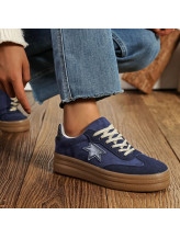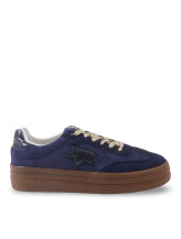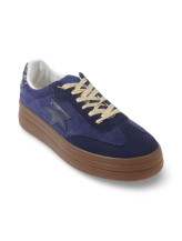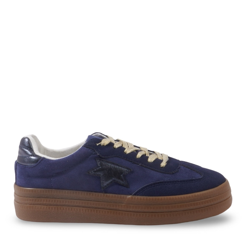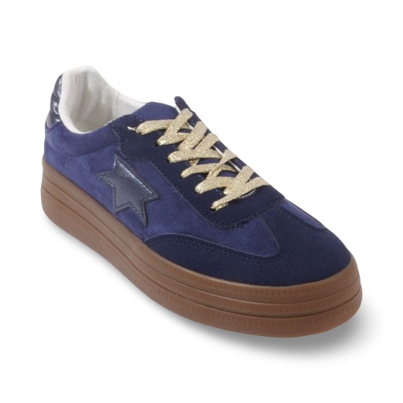 Avec son allure urbaine affirmée et son confort moelleux, la Liora est la basket plate qui dynamise vos looks du quotidien. Son coloris bleu nuit élégant contraste avec une étoile argentée qui capte la lumière, tandis que la semelle épaisse en gomme caramel apporte un esprit casual et tendance.