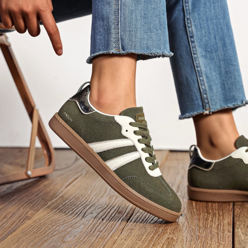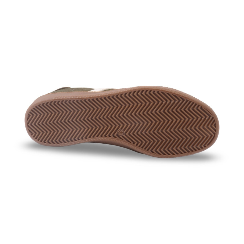Avec leur allure sportive et chic, les sneakers Armie se démarquent par leur teinte kaki élégante contrastée de détails blancs. La semelle en gomme couleur miel apporte un côté rétro tendance, tandis que l’arrière métallisé ajoute une note moderne et lumineuse.