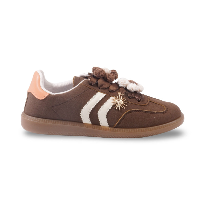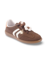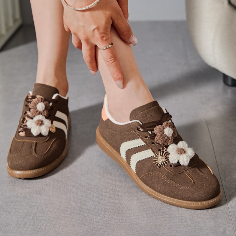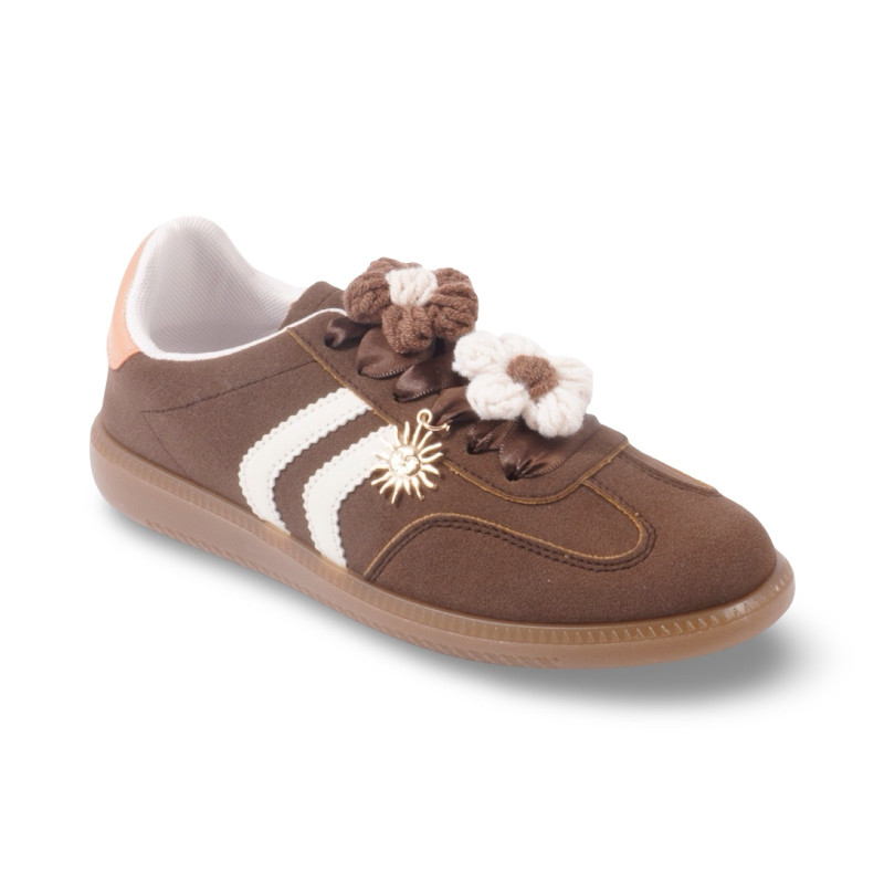 Ces sneakers allient confort, originalité et touches raffinées. Leur design associe des lignes sportives à des détails précieux comme les appliques florales en tissu et l’ornement soleil doré, apportant un esprit unique à vos tenues.