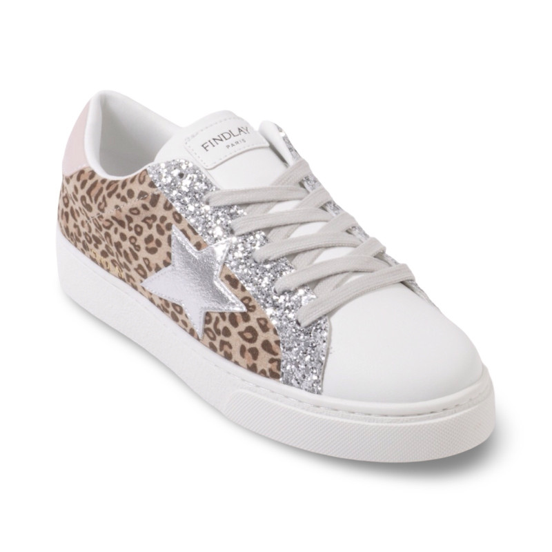 La bande latérale pailletée argent apporte une touche lumineuse, tandis que l’étoile effet cuir métallisé argent signe le modèle avec caractère.