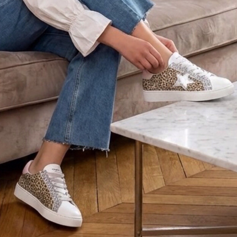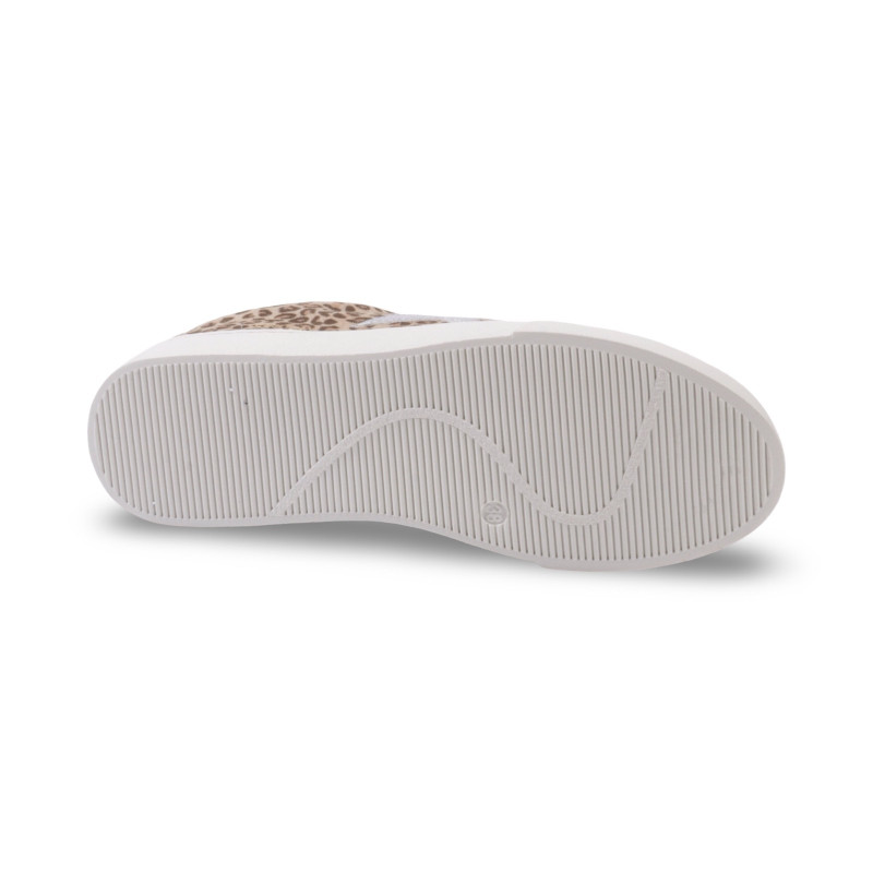 La tige associe un imprimé léopard chaleureux à des empiècements blancs lisses pour une silhouette moderne et facile à porter.
