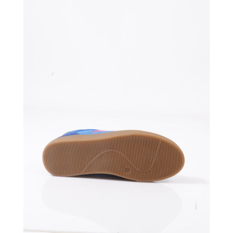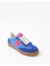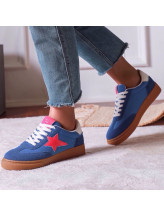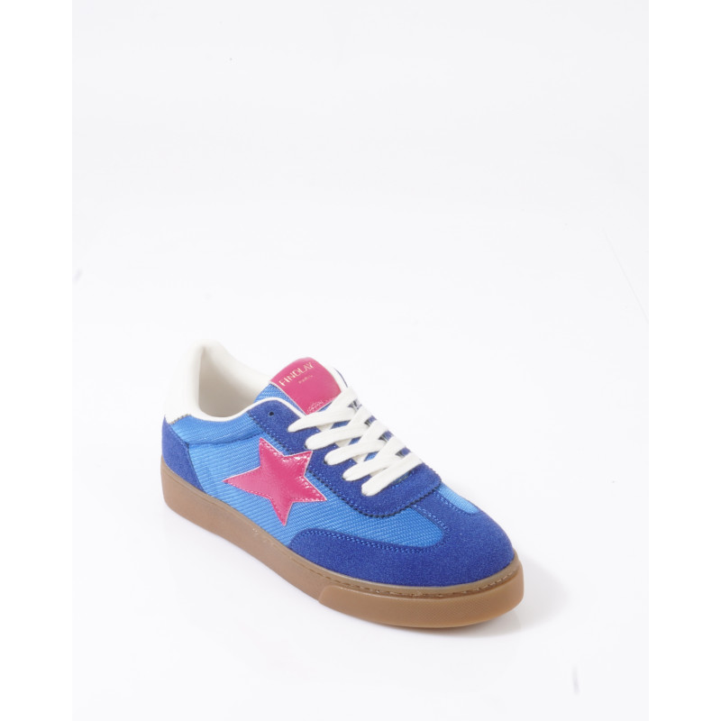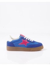La tige combine une matière effet suédé bleue et une finition textile ton sur ton, créant un contraste de textures subtil et moderne. L’étoile brillante sur le côté signe le modèle avec une touche graphique forte et résolument mode.