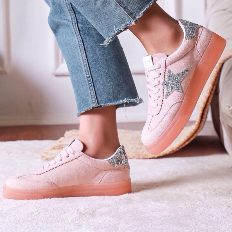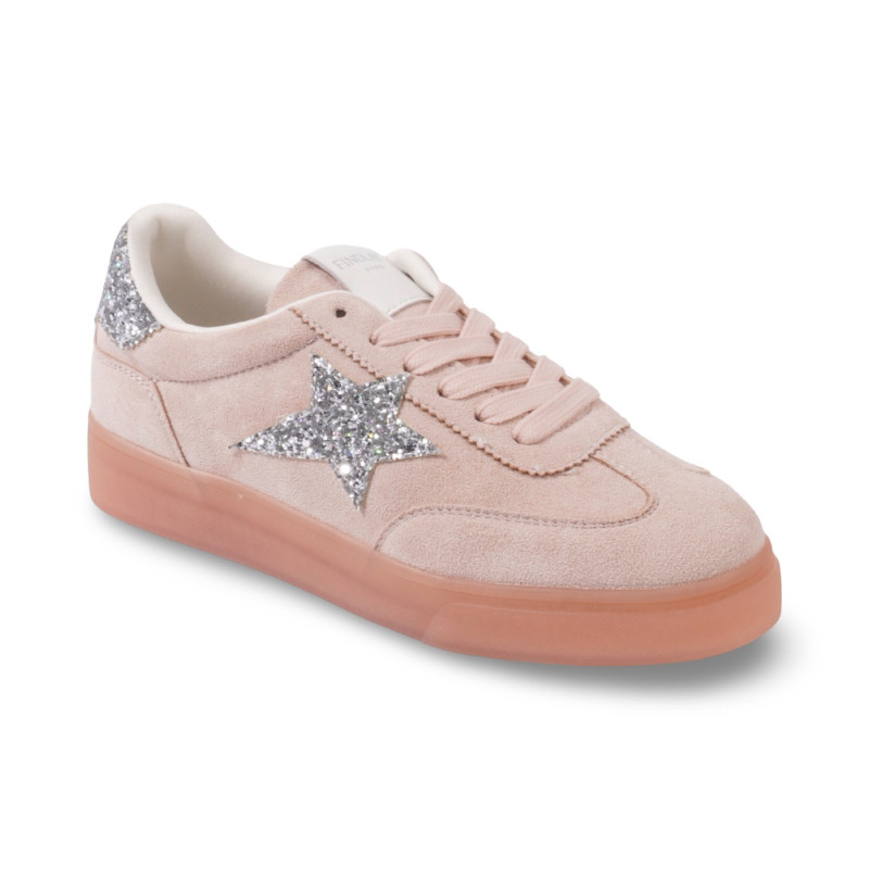 La tige combine une matière effet suédé bleue et une finition textile ton sur ton, créant un contraste de textures subtil et moderne. L’étoile brillante sur le côté signe le modèle avec une touche graphique forte et résolument mode.