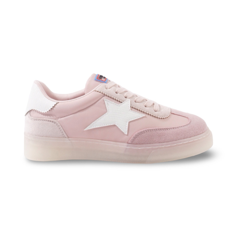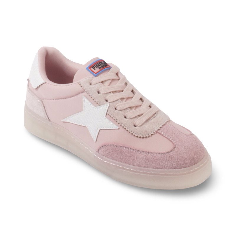 Cette sneaker basse séduit par son esthétique douce et contemporaine, déclinée dans des tons pastels.