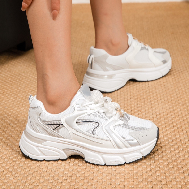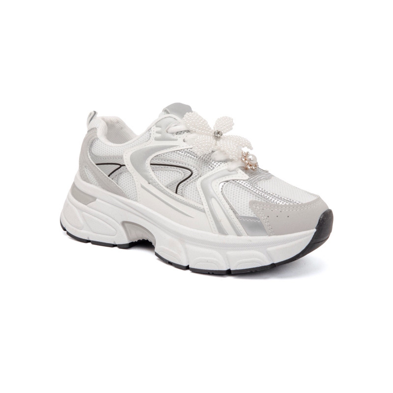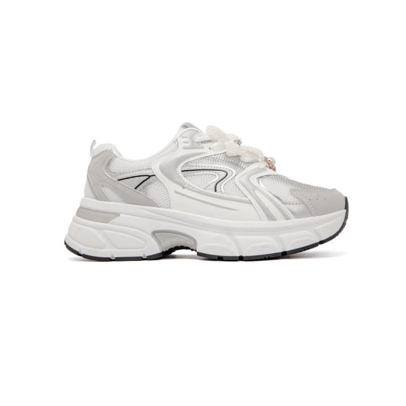 Les lacets sont sublimés par des détails décoratifs raffinés, avec un nœud orné de perles et un bijou délicat qui apportent une touche féminine et originale à l’ensemble.