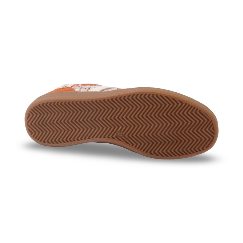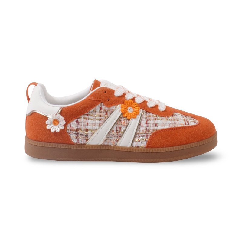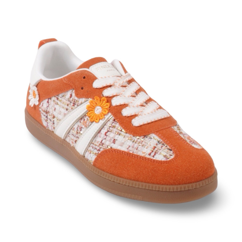 Un esprit rétro revisité avec une touche florale pleine de fraîcheur. Les baskets Capucine associent une matière effet daim douce au toucher à des empiècements en tweed délicatement texturés, créant un contraste raffiné et lumineux.