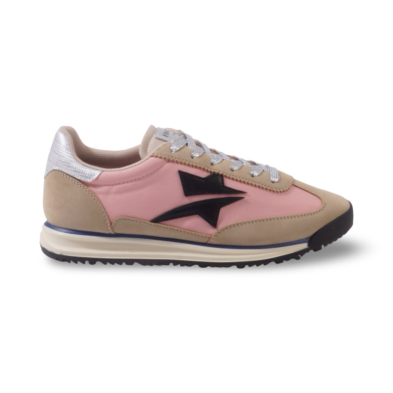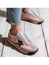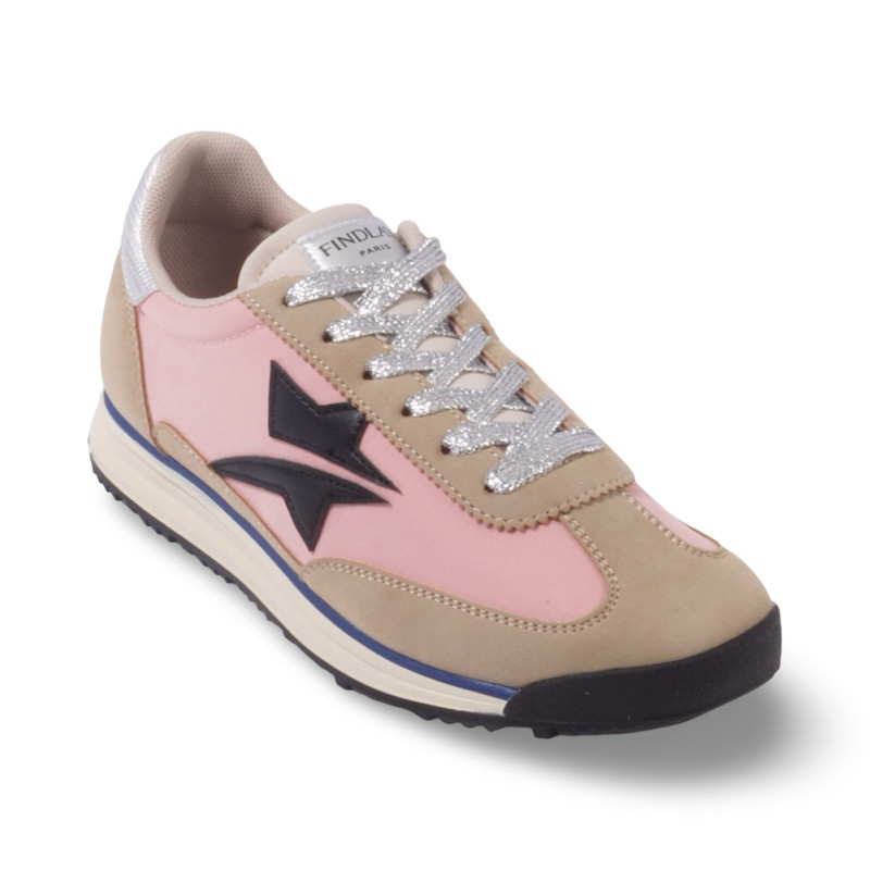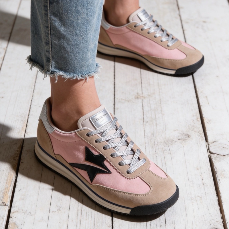 Une silhouette rétro revisitée avec éclat. Les baskets Carmélia jouent sur l’équilibre parfait entre sobriété et détails lumineux.