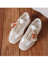 Le jeu de superposition des empiècements crée un effet visuel raffiné, tandis que le petit détail décoratif sur le côté apporte une signature unique au modèle. La semelle épaisse assure un bon maintien et un confort agréable tout au long de la journée.