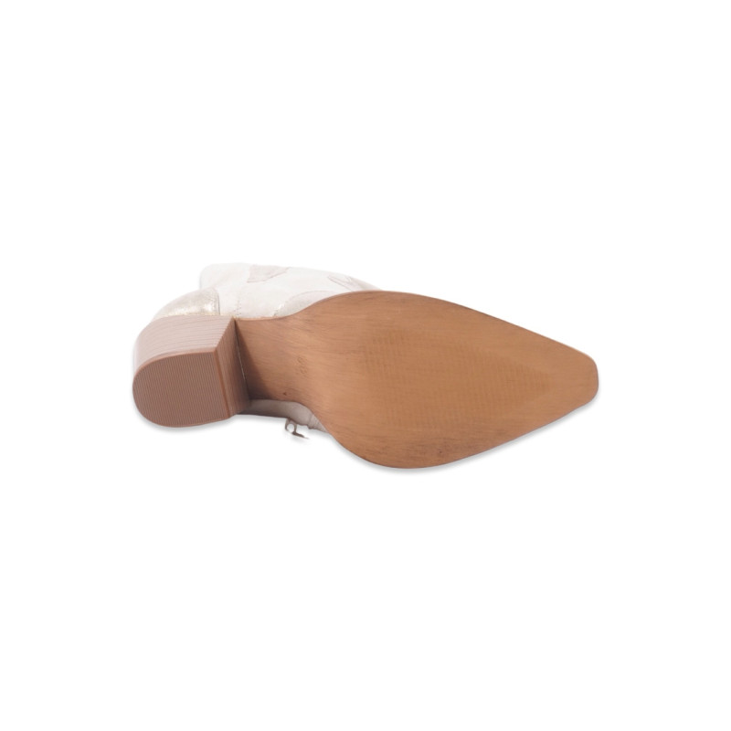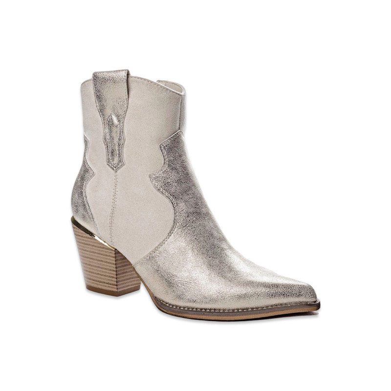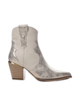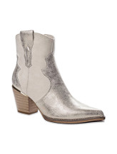 Allure western revisitée pour ces bottines gARLY, qui allient lignes élancées et jeux de matières. La tige associe un effet cuir suédé doux à effet un cuir métallisé texturé, créant un contraste raffiné et lumineux. Le talon biseauté apporte une touche authentique tout en assurant confort et stabilité au quotidien. Parfaites pour dynamiser un jean slim, une robe fluide ou une jupe midi, elles offrent une élégance affirmée avec une pointe de modernité.