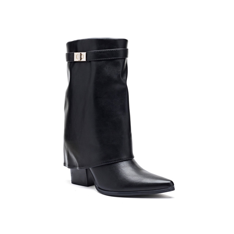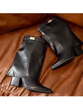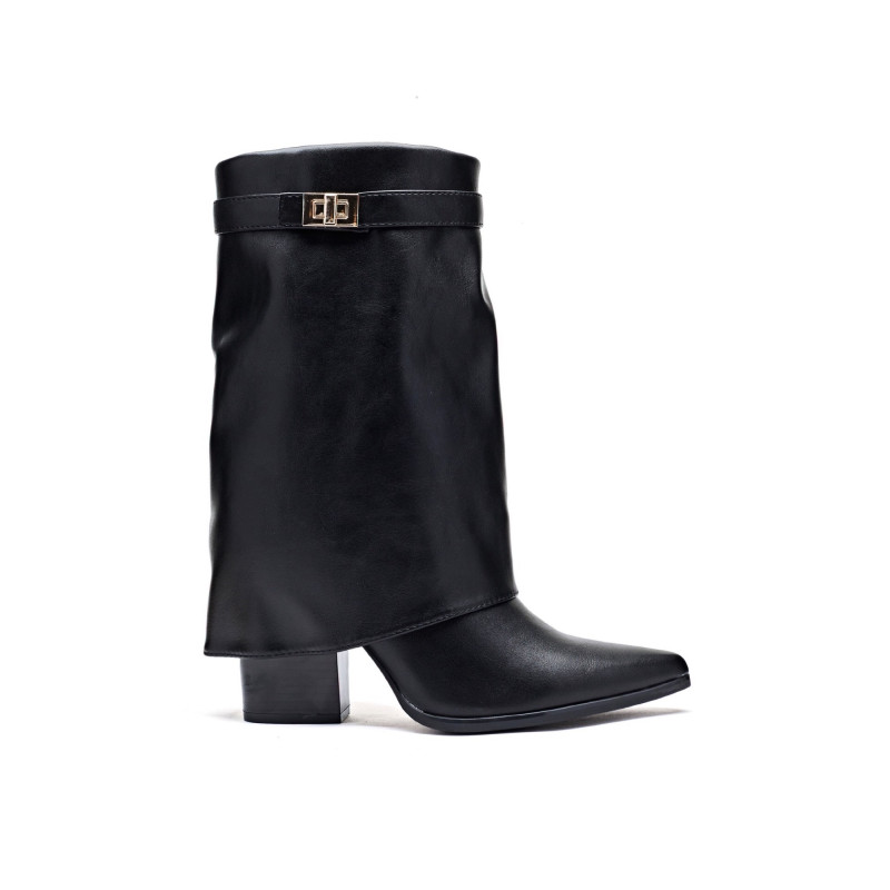 Les bottes vIRGINIA séduisent par leur design contemporain et leur allure affirmée. Leur tige souple qui se replie délicatement apporte une touche couture et originale, tandis que la boucle dorée illumine la ligne avec subtilité.