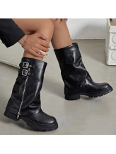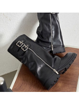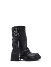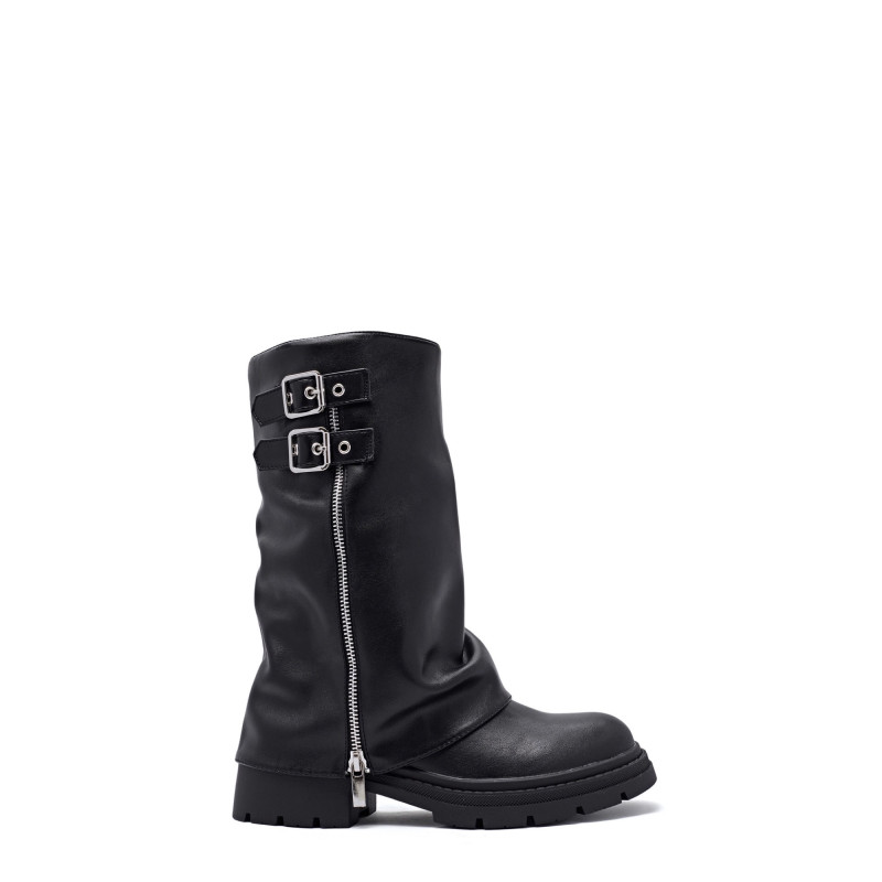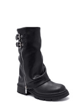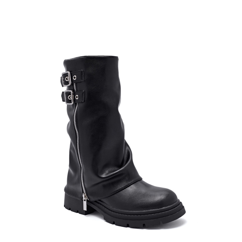 Cette botte noire allie élégance et robustesse, ornée de boucles métalliques et de zips qui ajoutent une touche de caractère. Elle s'adapte parfaitement à divers styles vestimentaires, tout en offrant une protection optimale. Idéale pour les occasions décontractées ou les sorties en ville, cette botte est un incontournable pour toute garde-robe tendance.