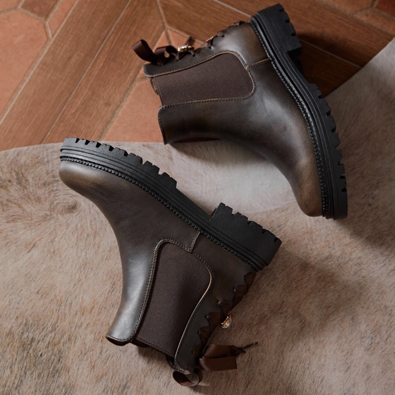 Ces santiags revisitées allient un style western affirmé à une élégance urbaine. Leur matière effet cuir métallisé, subtilement contrastée par des empiècements en suède, apporte relief et caractère. La coupe ajustée et le bout pointu affinent la silhouette, tandis que le talon moyen offre confort et stabilité. Disponibles en bordeaux profond, bronze chaud et argent lumineux, elles s’adaptent aussi bien à un look bohème qu’à une tenue habillée.