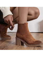 Ces boots camel au style épuré apportent une élégance naturelle à vos tenues. Confectionnées en matière synthétique haut de gamme aspect velours, elles séduisent par leur teinte chaleureuse et leur talon travaillé.