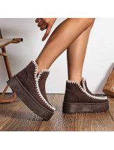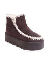 Les boots fourrées Inas revisitent le style hivernal avec une touche moderne et ultra-confortable. Leur tige en matière effet daim douce et souple se marie à une doublure douillette qui garde les pieds bien au chaud. Le détail couture contrastée apporte une note artisanale chic, tandis que la semelle plateforme crantée assure une démarche stable et tendance.