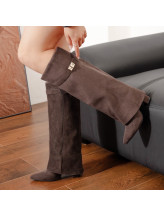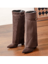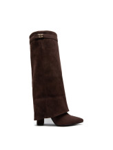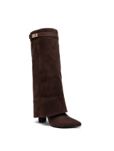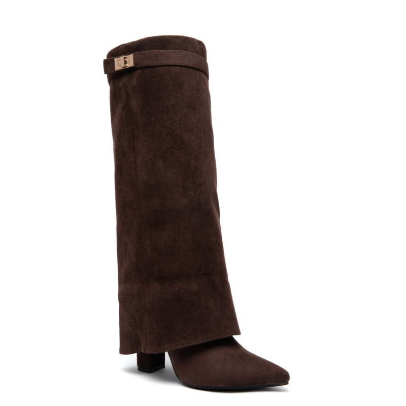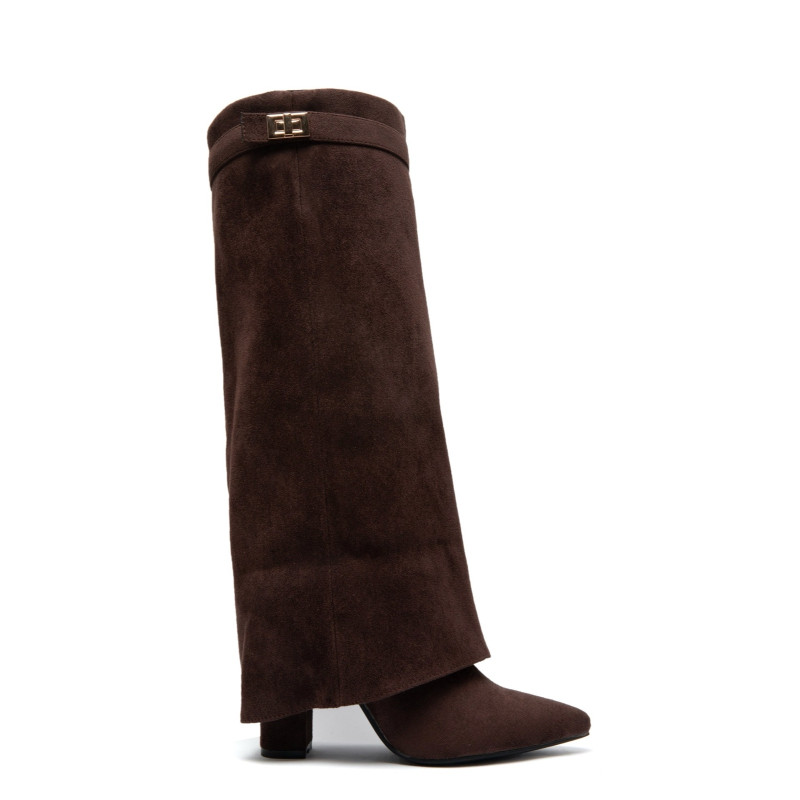 Les bottes Susa imposent une silhouette féminine et affirmée. Leur ligne droite et leur bout pointu allongent la jambe, tandis que la boucle dorée subtile au niveau du mollet ajoute une touche chic sans excès.