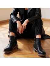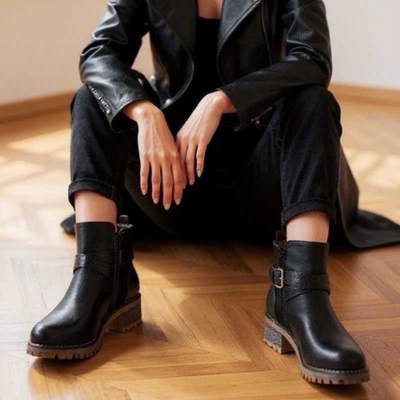 Les boots Nola incarnent l’équilibre parfait entre caractère et confort. Avec leur semelle crantée, leurs deux boucles métalliques et leur tige ajustée, elles revisitent l’esprit biker avec une touche plus féminine. La matière effet cuir patiné renforce leur allure authentique et contemporaine.