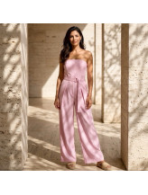 La taille est délicatement marquée par une ceinture intégrée qui souligne la ligne avec justesse. La coupe large des jambes crée un tombé fluide et aérien, offrant une allure moderne et parfaitement équilibrée. L’ensemble dégage une impression de légèreté tout en conservant une vraie présence visuelle.
