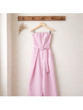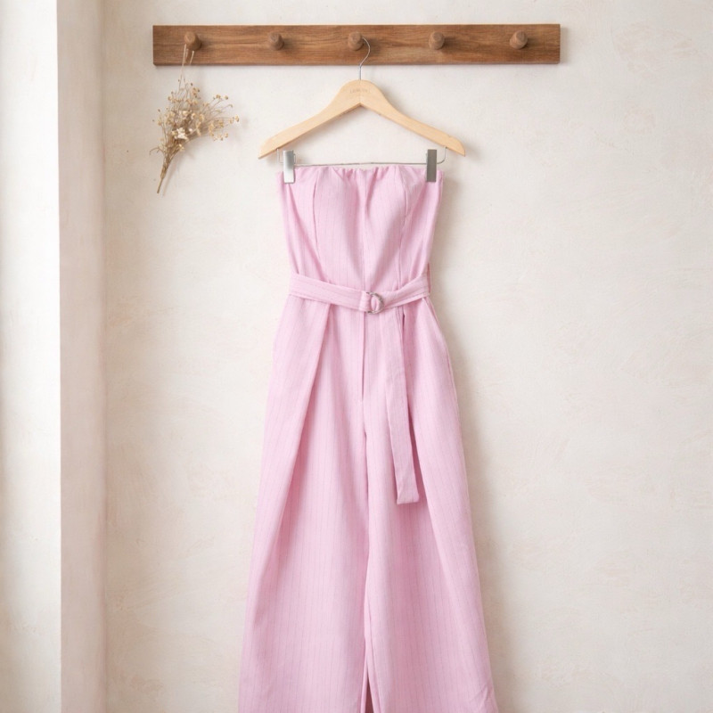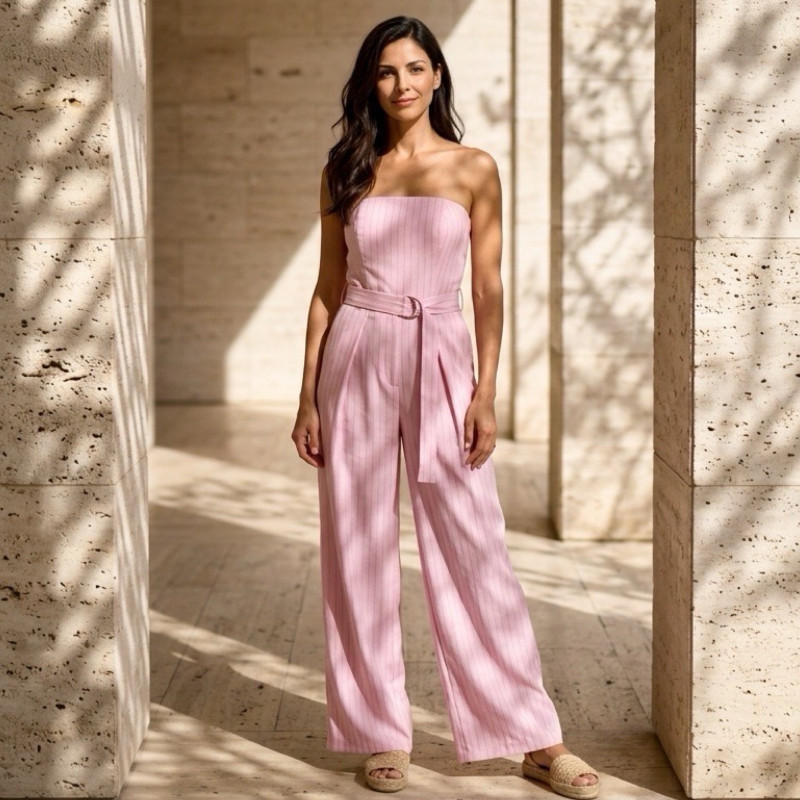 La combinaison Isolde se distingue par sa ligne épurée et sa silhouette élégante, pensée pour sublimer sans en faire trop. Son bustier structuré met en valeur le haut du corps avec finesse, tandis que les rayures verticales apportent de la hauteur et affinent la silhouette.