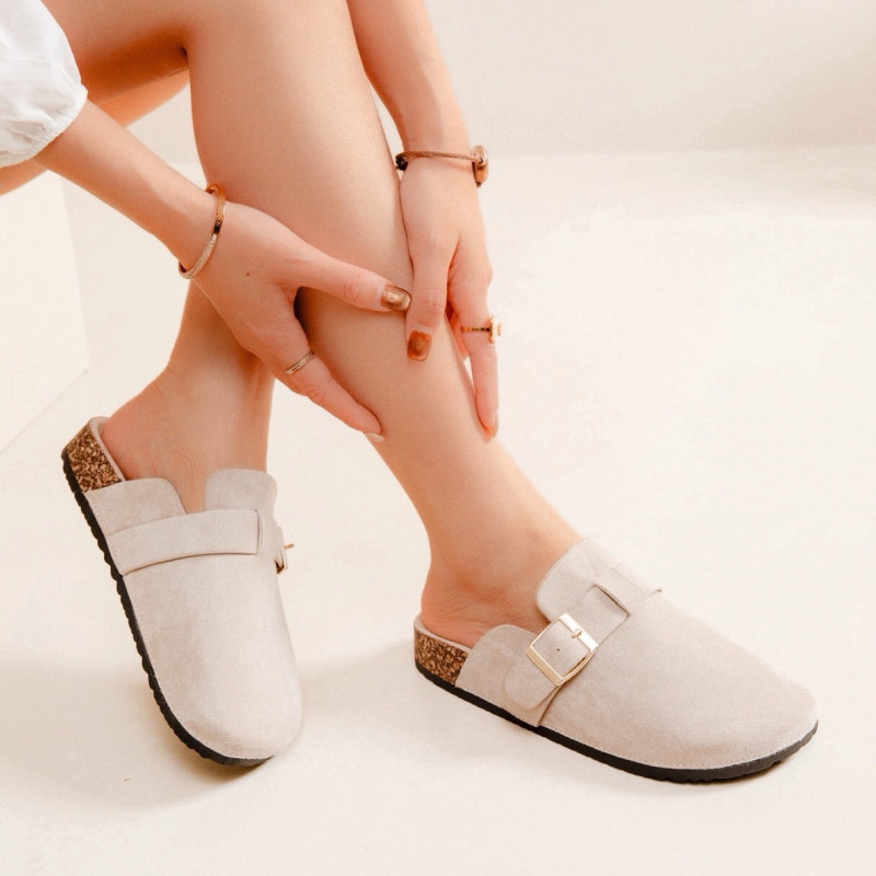 Cette mule fermée pour femme séduit par son style minimaliste et sa matière effet suédé dans différents tons.