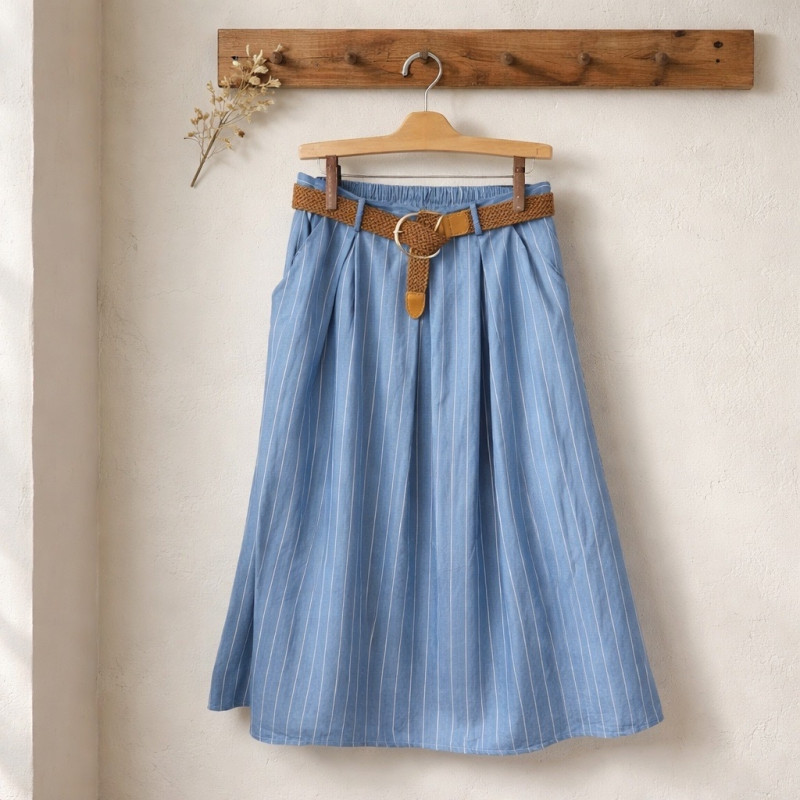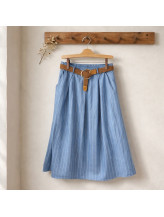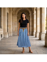La jupe Elvire apporte une élégance naturelle et structurée à la silhouette. Sa coupe midi légèrement évasée crée un mouvement fluide à chaque pas, tout en dessinant une allure féminine et équilibrée.