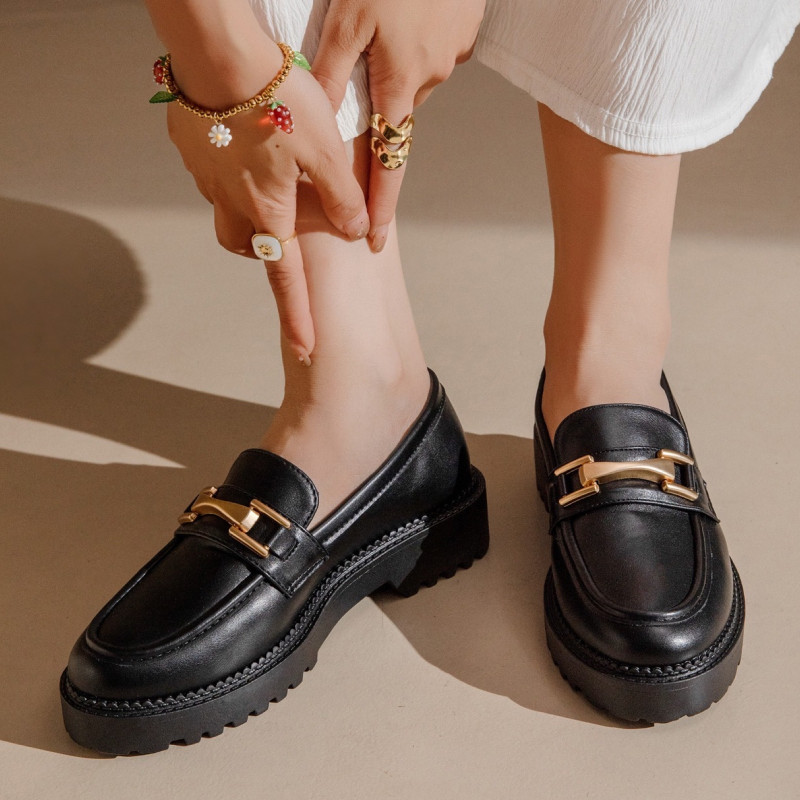 Le modèle Inès incarne l’allure citadine contemporaine, avec une semelle crantée bien pensée et un bijou doré sophistiqué. Son design structuré donne de l’assurance à toutes vos tenues : tailleur pantalon, robe fluide ou jean brut.