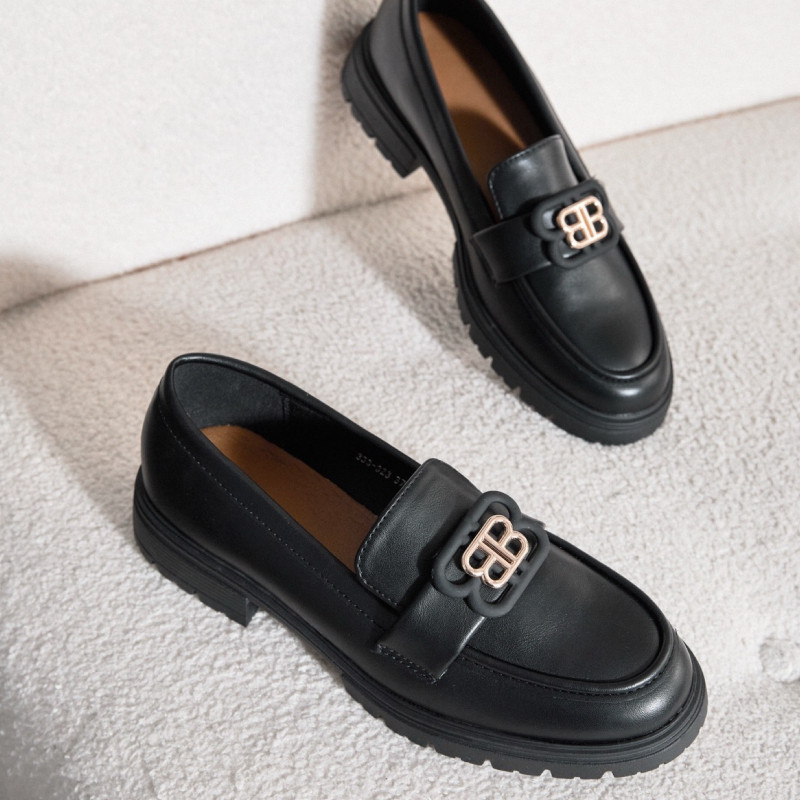 L’élégance intemporelle rencontre le confort moderne avec ce mocassin noir à semelle crantée.