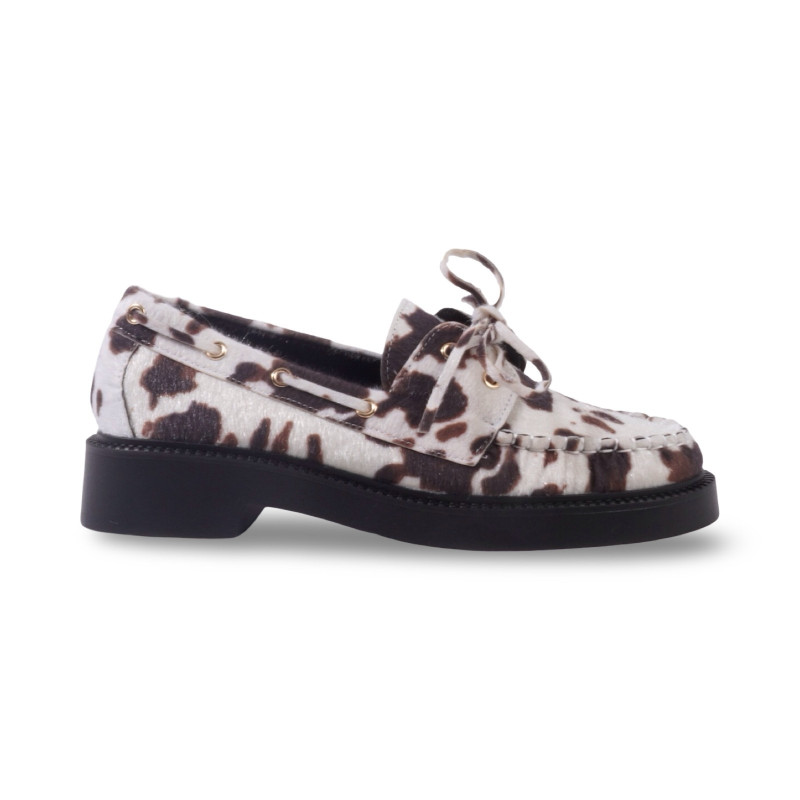 Le mocassin Elio casse les codes classiques avec une touche audacieuse. Sa forme intemporelle s’associe à des imprimés modernes : version léopard pour un style affirmé, version tachetée façon animalier pour un twist mode, ou version noire sobre et chic.