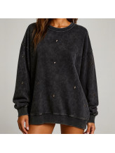 Ce sweat oversize gris anthracite séduit par son allure décontractée et contemporaine. Sa finition textile à l’aspect légèrement patiné crée un effet visuel unique, tandis que sa coupe ample structure la silhouette avec modernité.