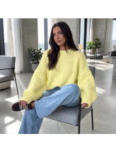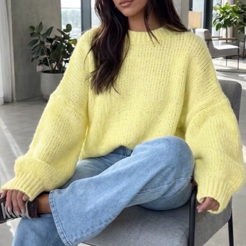 Ce pull à maille large séduit par sa silhouette généreuse et contemporaine. Sa coupe ample est sublimée par des manches ballon qui apportent volume et caractère, tandis que l’encolure ronde équilibre l’ensemble avec élégance.
