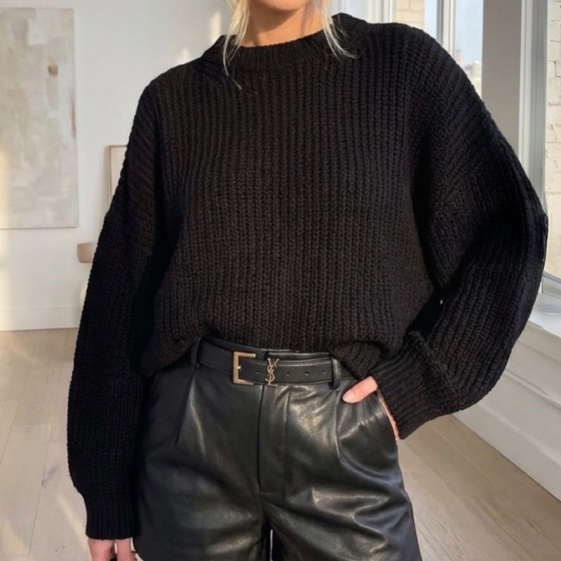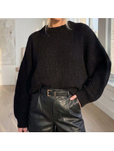 Ce pull à maille large séduit par sa silhouette généreuse et contemporaine. Sa coupe ample est sublimée par des manches ballon qui apportent volume et caractère, tandis que l’encolure ronde équilibre l’ensemble avec élégance.