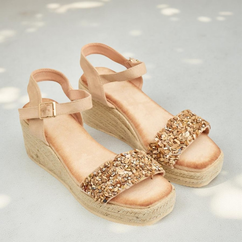 Découvrez nos sandales dorées, un mélange parfait de confort et d'élégance. Elles sont ornées d'une bordure en sequins dorés qui capte la lumière à chaque pas. Idéales pour ajouter une touche glamour à vos tenues d'été, ces sandales sont le choix parfait pour les journées ensoleillées et les soirées festives. Ne manquez pas l'occasion de briller avec style !