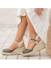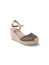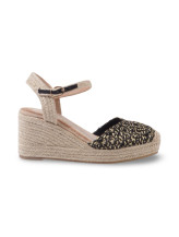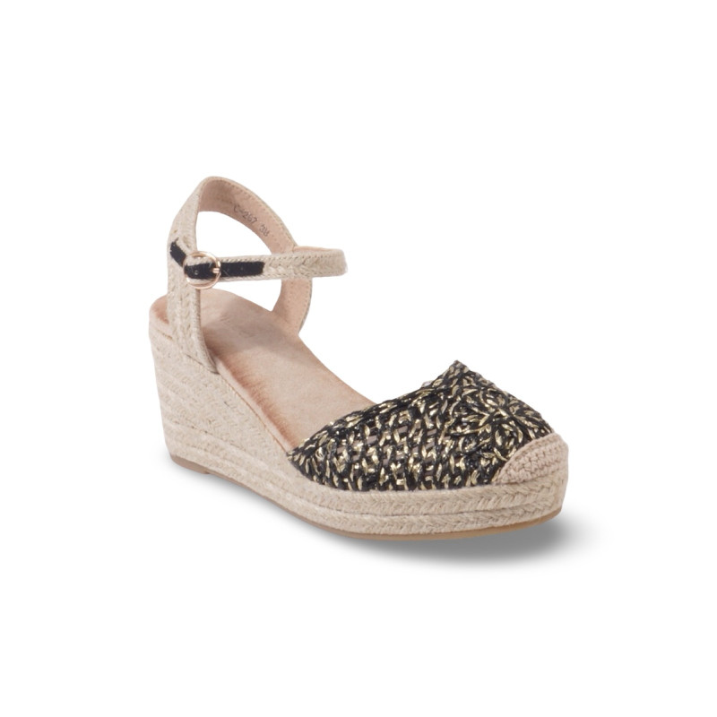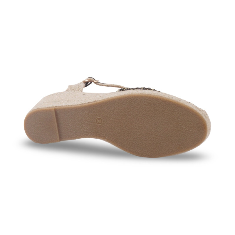Découvrez notre sandale à talon compensé en espadrille, confectionnée en tissu avec un motif noir et blanc élégant. Parfaite pour ajouter une touche de style à vos tenues estivales, cette sandale allie confort et tendance.