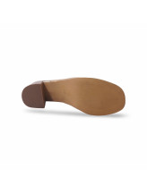 Le talon épais finition bois apporte une touche naturelle et contemporaine, parfaitement équilibrée par la finesse des brides.