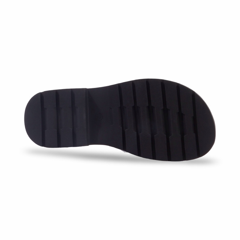 La semelle crantée, au volume parfaitement équilibré, allonge visuellement la jambe tout en offrant stabilité et confort au quotidien. Un modèle pensé pour accompagner aussi bien une robe fluide qu’un short structuré ou un jean estival.