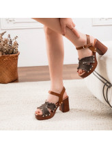 La bride cheville ajustable avec boucle métallique assure un maintien élégant, tandis que la semelle plateforme et le talon épais dans un ton brun chaud structurent la silhouette avec modernité.