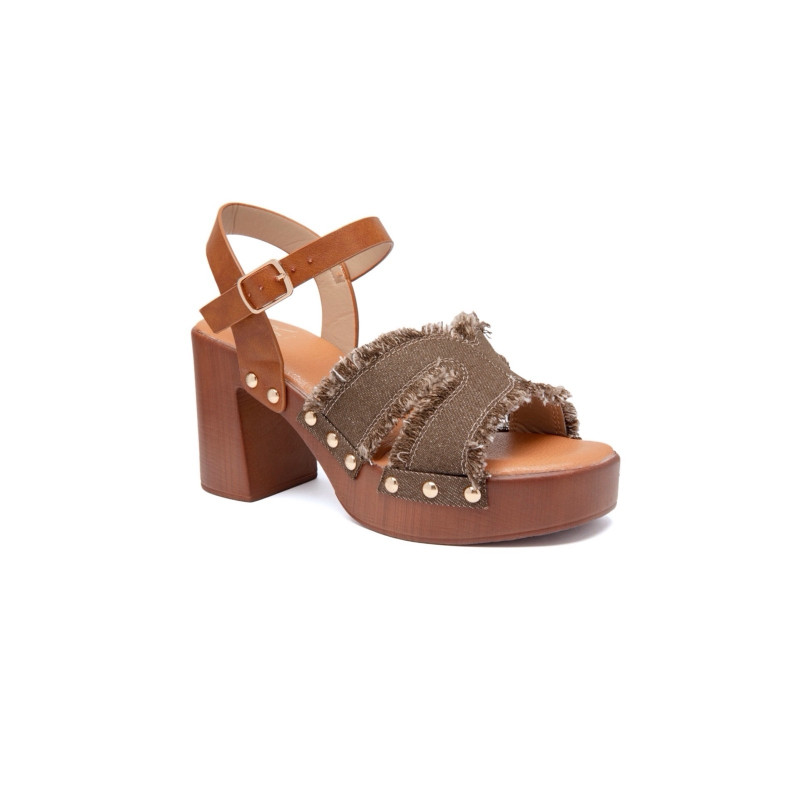 Cette sandale à talon pour femme affiche un style affirmé mêlant esprit naturel et allure contemporaine.