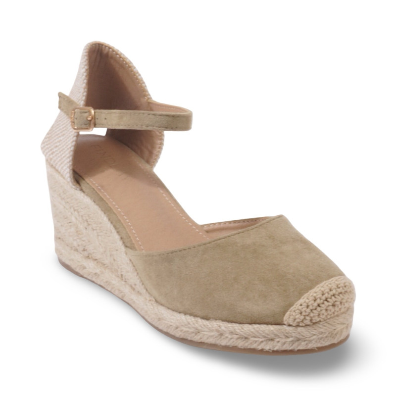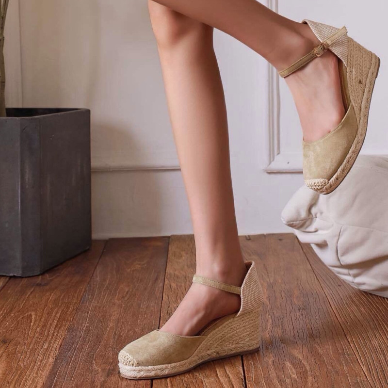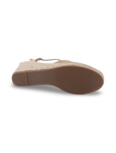 La bride cheville ajustable avec boucle métallique affine la silhouette et assure un maintien visuel harmonieux. La semelle compensée recouverte de corde tressée renforce l’esprit authentique du modèle et souligne son allure estivale.