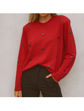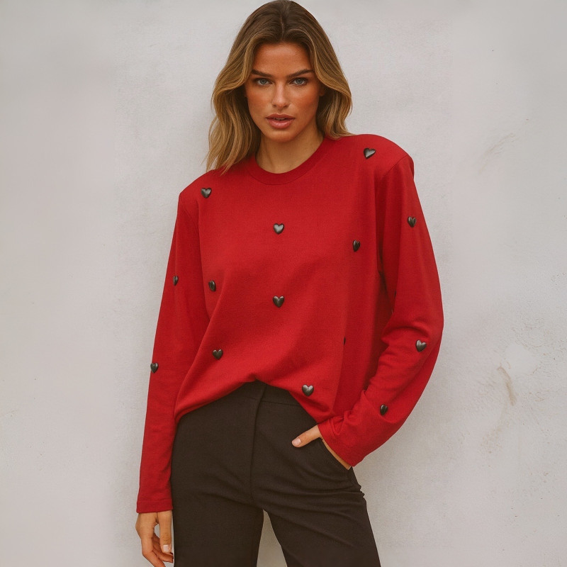 Ce sweat revisite le basique avec une touche couture grâce à ses petits cœurs en relief, délicatement répartis sur l’ensemble du modèle.