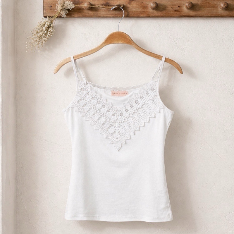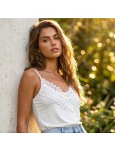 Le top Isadora est une pièce essentielle du dressing féminin, à la fois élégante et facile à porter. Sa coupe délicate à fines bretelles met en valeur les épaules et le décolleté grâce à un sublime empiècement en dentelle travaillé avec finesse.