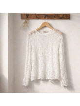Son col montant délicat structure le haut avec élégance, tandis que la matière texturée crée un effet visuel subtil et sophistiqué. Les manches longues équilibrent parfaitement la silhouette et renforcent son allure chic et moderne.